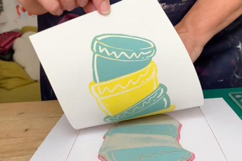 Ik vind meestal het eindproduct van lino-druk op een of andere manier heel krachtig en aantrekkelijk. Ik had behoefte aan uitleg omdat ik niet verder kwam dan een plaatje met een enkele kleur en bovendien erg rommelig. Het bracht me plezier in maken, de vibe van langzaam en precies en de uitleg waar ik naar op zoek was.